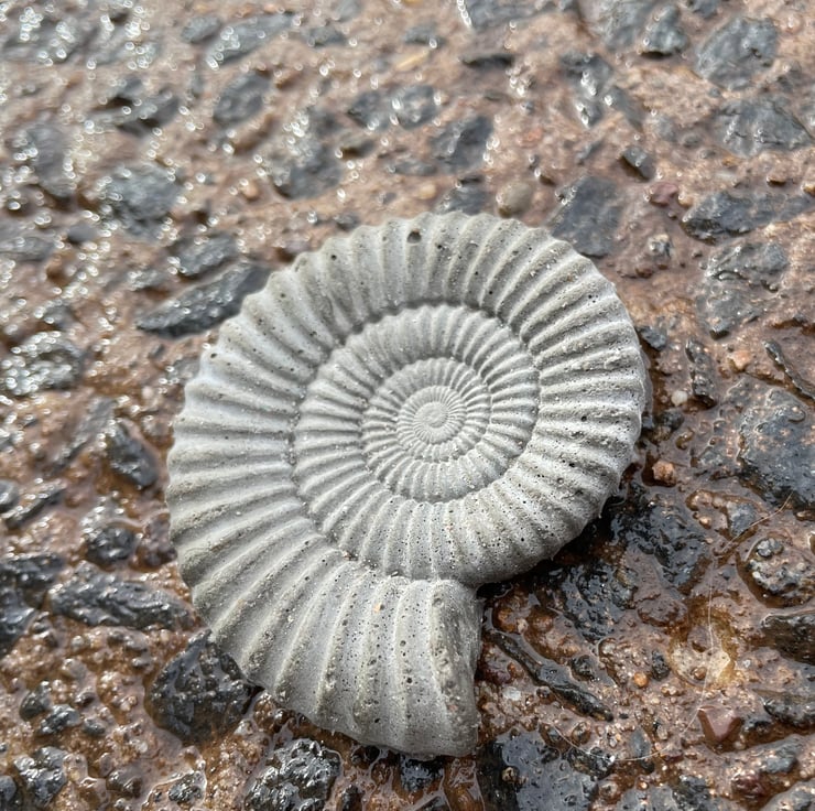 Small Elevate your home decor with this handcrafted concrete Ammonite sculpture. Cast with care to capture the intricate, swirling details of the original marine cephalopod, this piece bridges the gap between pre-history and modern art. It is finished to withstand the elements, making it an ideal choice for both your living room shelf and your garden path. A unique, durable, and affordable piece of natural history for your home. Strong magnet attached to the back and silicone film to avoid any scratches to your fridge paint 50mm x 65mm