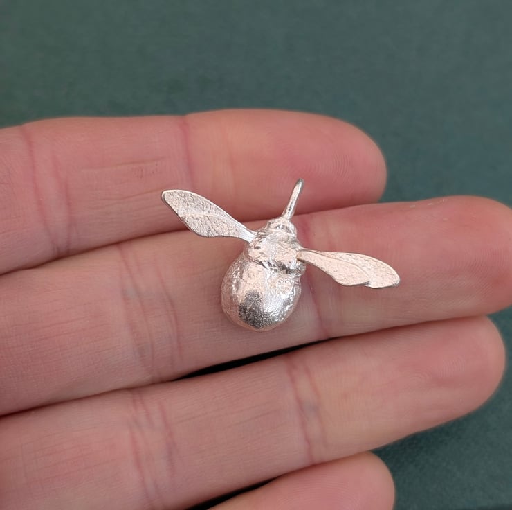 This Bee measures 32mm wingspan and 23mm long from top of pendant bail to bottom of Bee.