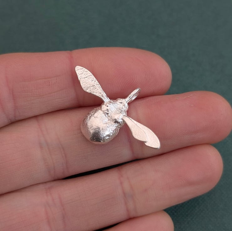 This Perfectly Imperfect Bumble Bee measures 32mm wingspan and 22mm from top of bail to bottom of Bee.