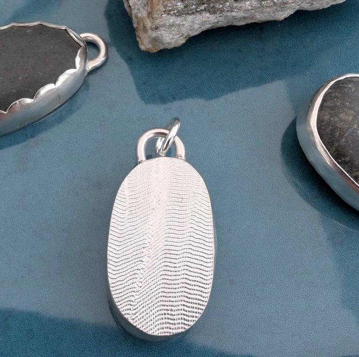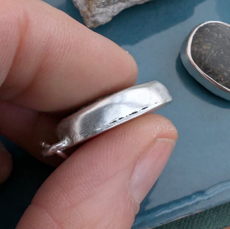 This one has a split in the silver setting on one side. This should not affect the secureness of the pebble in the setting but has meant it's made the Perfectly Imperfect pile! See pic 3.