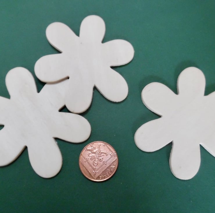 These are a medium size in the shape of a FLOWER cut from 3mm birch plywood