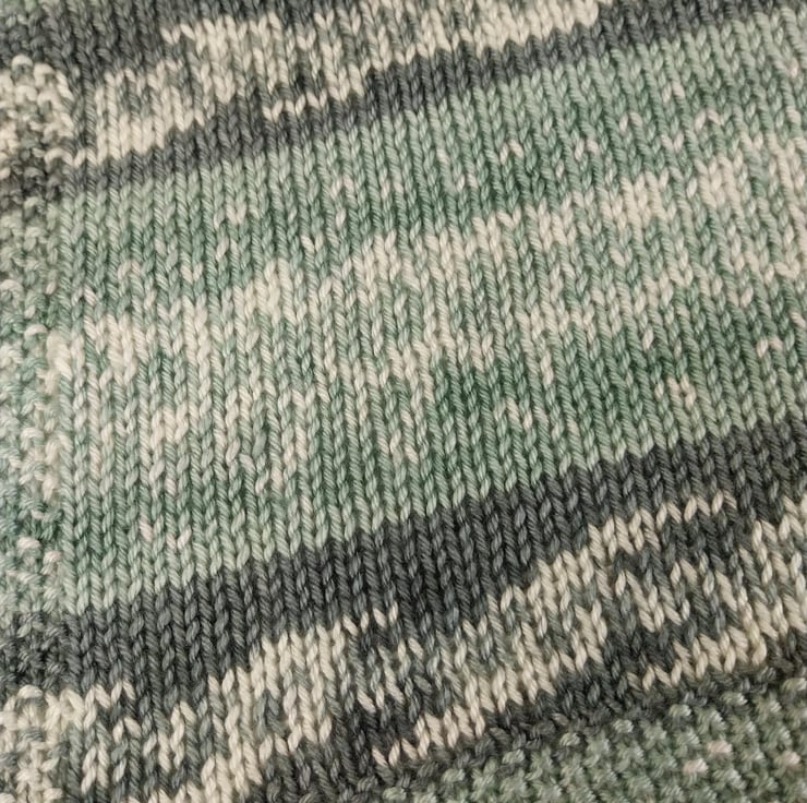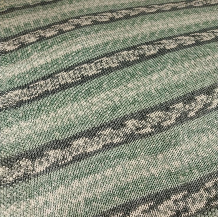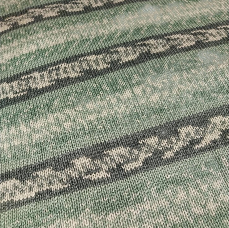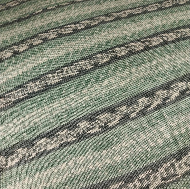 Hand Knitted Baby Blanket Sage Green Fair Isle Pram Blanket 30x33 inches