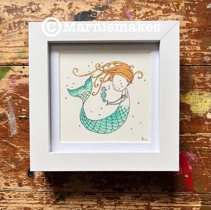 Lovely little illustration finished in Gouache, measuring 7.5 x 7.5 cm, mounted and set in a simple white 10 x 10 cm frame, ready to pop straight in to your wall!