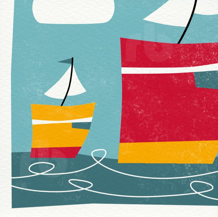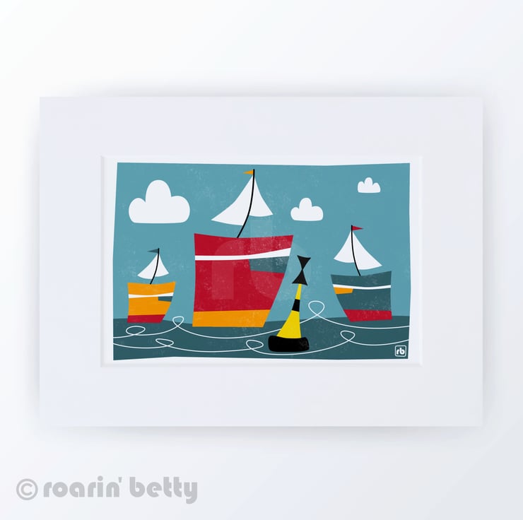Illustration of three sailing boats racing. Ideal present for the sailors in your life. These illustrations are inspired by the joy of racing sailing boats on the South Coast
