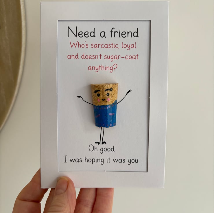 I love creating cork characters with big personalities and expressive faces. Each cork is carefully hand-painted and finished individually, meaning no two cards are ever exactly the same.