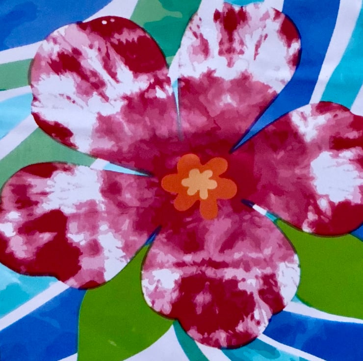 Living on a small island, this broken inflatable gave me the biggest smile when it was donated to me. Not only did the pattern on this popped dolphin include gorgeous tropical flowers, it was also covered in waves and swirls in all my favourite shades of sea-blue. When I saw this pink flower on the side of the dolphin, I was thrilled that it was the perfect size to make a dog poo bag holder!