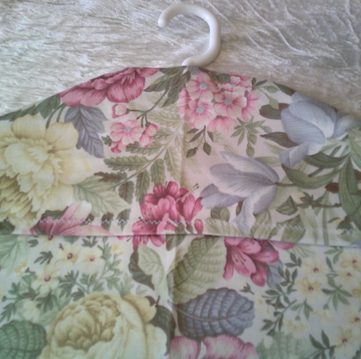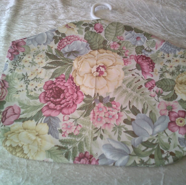 The handmade cotton peg bag will make an ideal addition to your laundry.. It measures approximately 13 inches x 14 inches (33cm x 35cm) and comes complete with a "swivel" hanger so that you can change the angle it is hanging on your washing line.