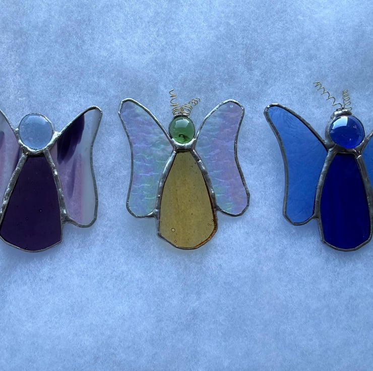 This item is hand cut and crafted using the Tiffany foiled glass method; each piece of glass is edged with copper foil, soldered and cleaned; sometimes a patina is added. Craft glass has unique imperfections making every piece original - we have done our best to faithfully show you the true colours in the photographs.