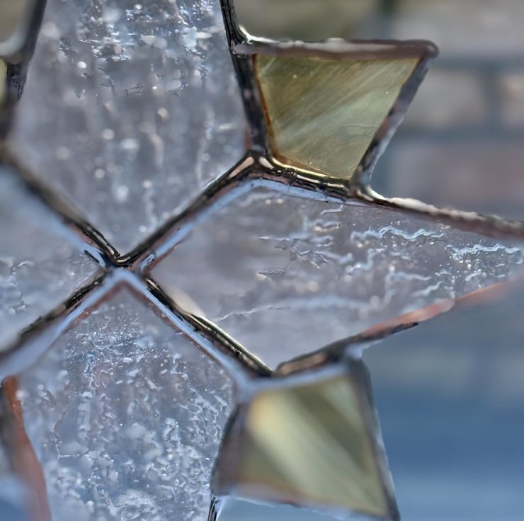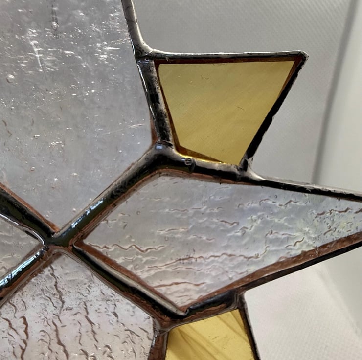 Stained glass Bethlehem star - Clear irridised glass with pale yellow quarters