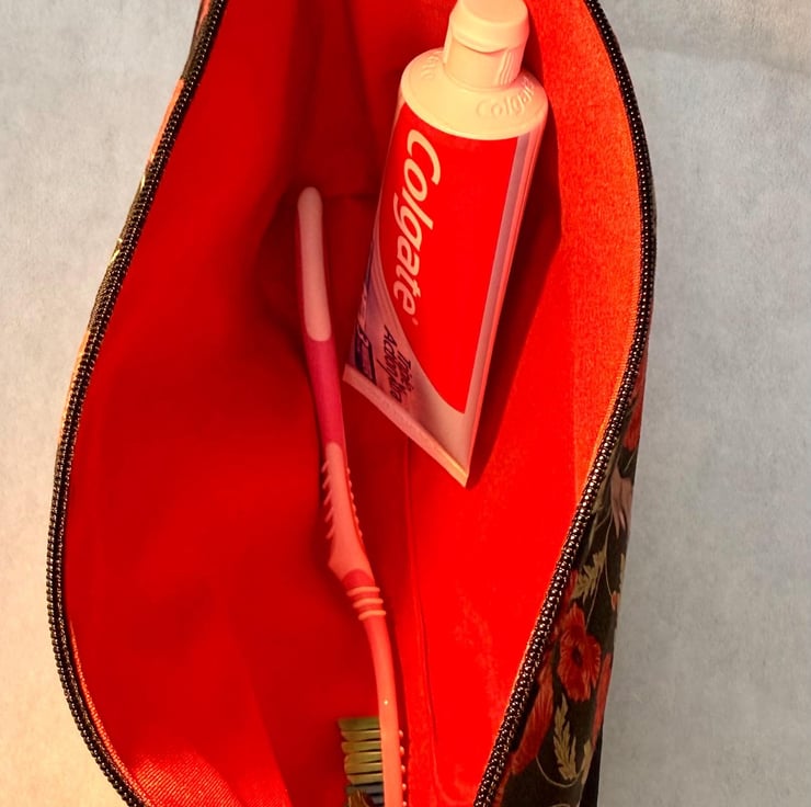 These handy pouches can be used for all sorts, whether part of your daily bag or on holiday. The size is large enough for sewing accessories, make-up, a shaving kit, notebook, medication, toothbrush, pens and pencils and general use as a sponge bag etc.. Just a useful pouch for so many things!