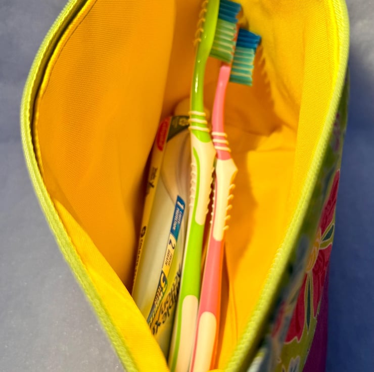 These handy pouches can be used for all sorts, whether part of your daily bag or on holiday. The size is large enough for sewing accessories, make-up, a shaving kit, a small notebook, medication, toothbrush, pens and pencils etc.. Just a useful pouch for so many things!