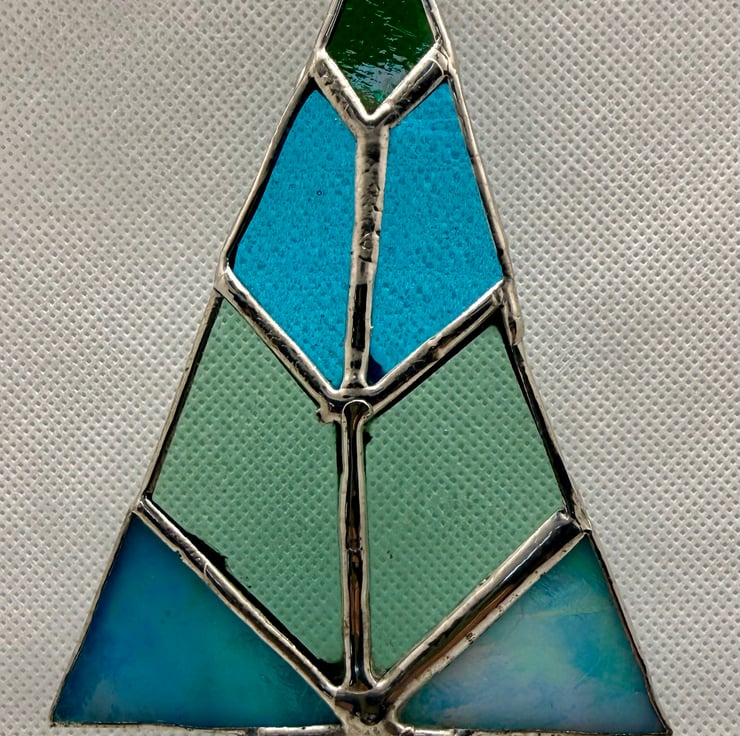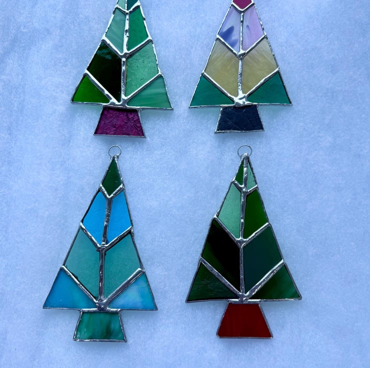 These medium trees grew from the satisfying rhythm of using up leftover glass from other stained‑glass pieces — small, beautiful fragments too lovely to waste. Bringing them together felt like assembling a patchwork of winter light: different colours, different textures, all joining to form something new.