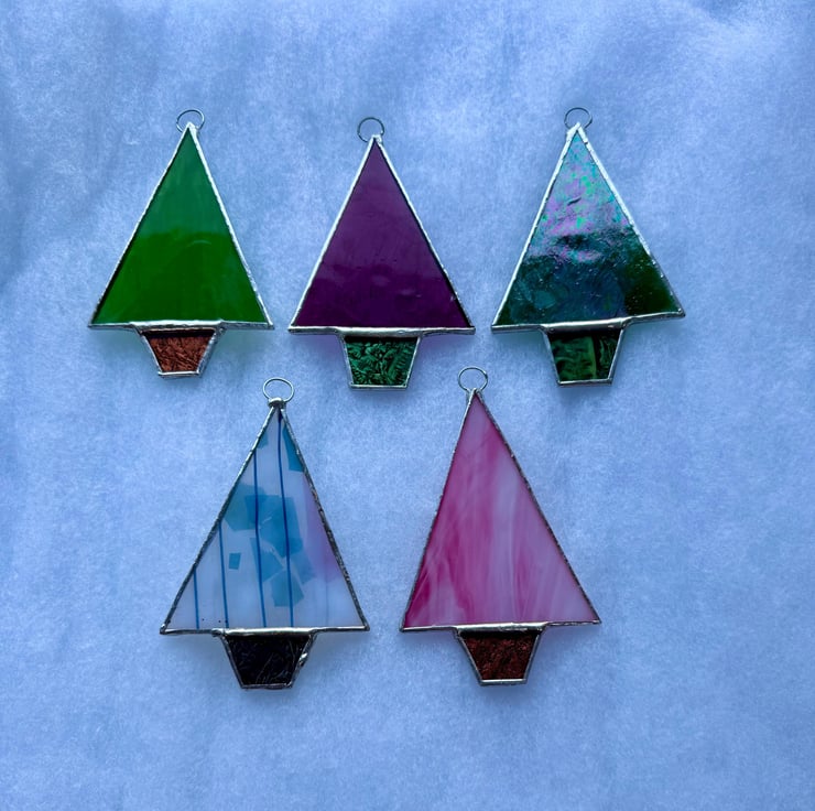 Craft glass naturally contains small variations and tiny imperfections, making each tree a unique original. I’ve photographed them carefully to show their true colours, though stained glass always shifts a little with the changing light.