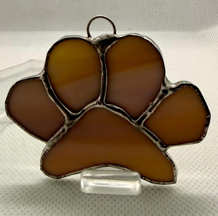 This listing is for one stained glass animal paw print in stained glass. Please select your colour from the drop down menu. What a wonderful way to celebrate a commemorate a loved pet.