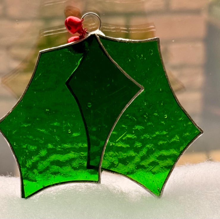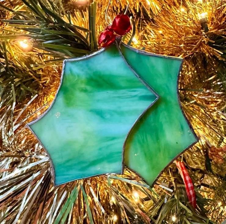 Stained glass holly with jingle berries