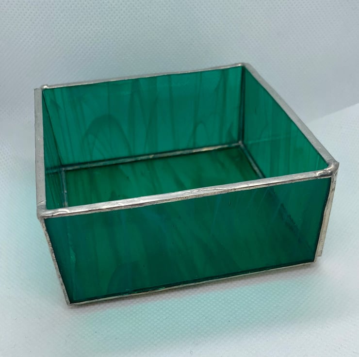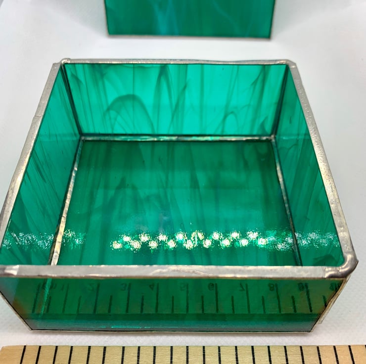 The finished item measures approximately 10 cm square and 3.5 cm high. There is a llid that just sits on top the box.