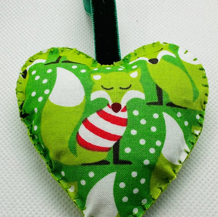 Each heart is handmade from start to finish using cotton fabric and blanket stitch. Each is plumply stuffed with polyester fibre filling and made to hang with a luxurious velvet loop. Please note that the fabric is not waterproof and these would not be suitable for hanging outside.