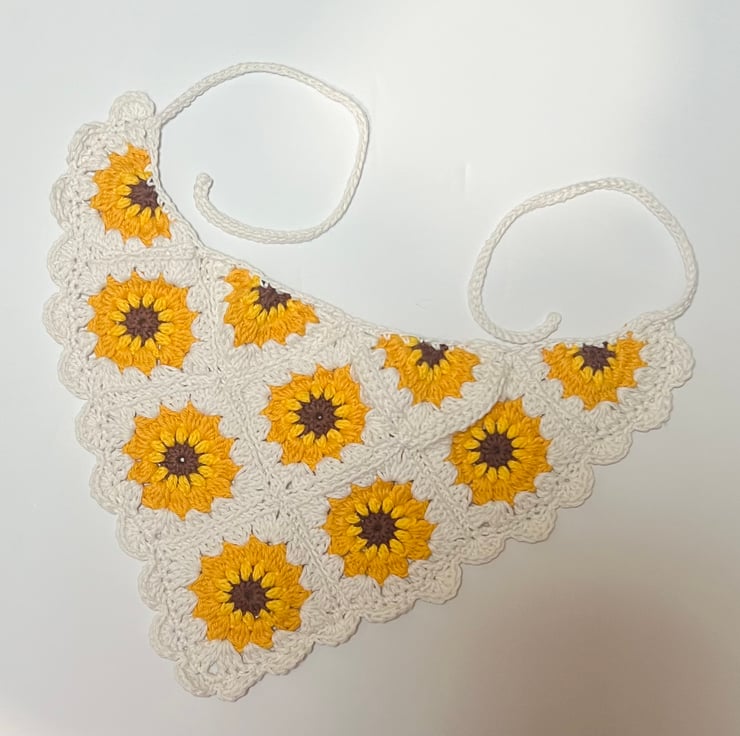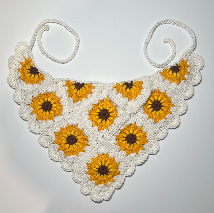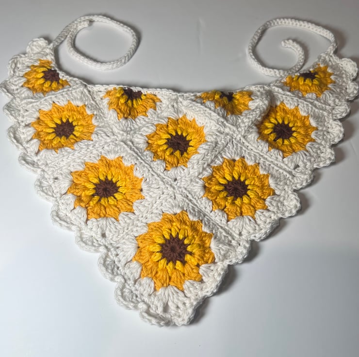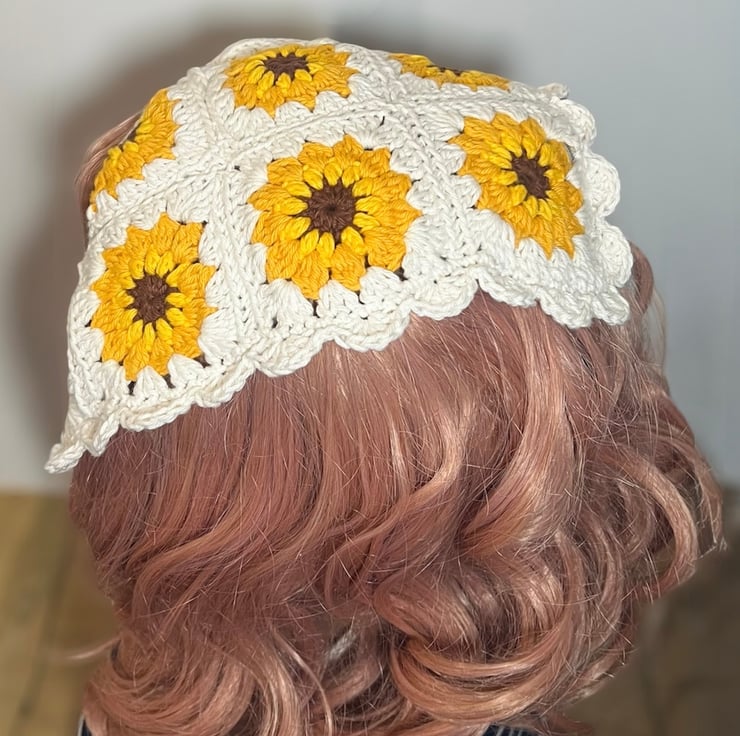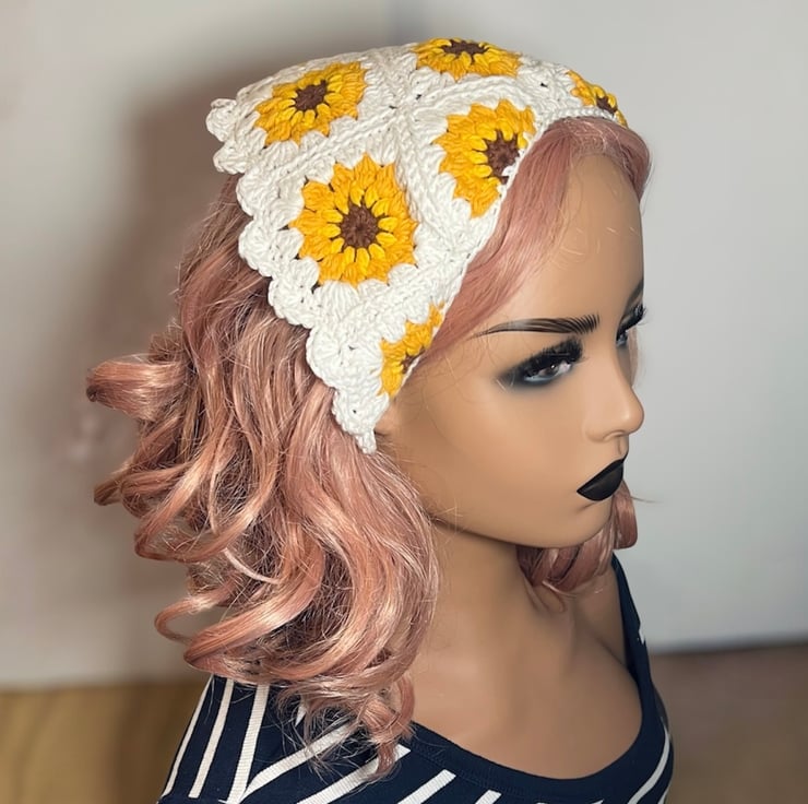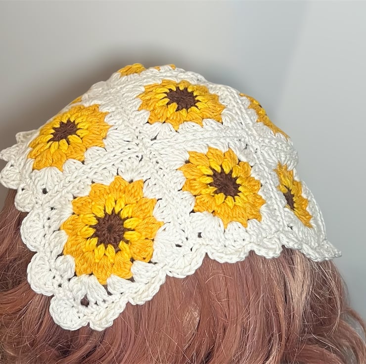 Handmade 100% Cotton Sunflower Crochet Bandana - Boho Granny Square Hair Scarf