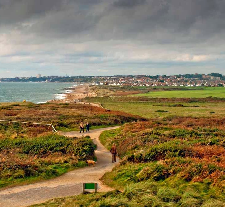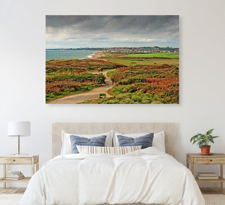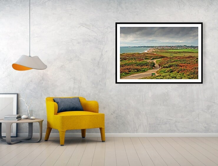 The view from Warren Hill on Hengistbury Head towards Bournemouth and Sandbanks, Dorset, England, United Kingdom a photographic print photography by Andy Evans Photos