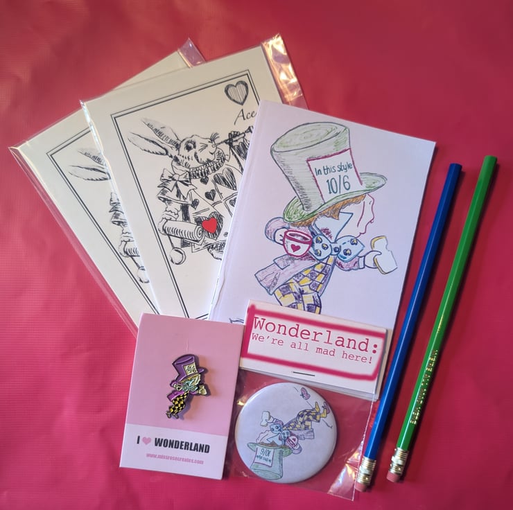 These are from my old Alice in Wonderland collection. They are the last items I have and will not be remade. Each pack will have different items in them.