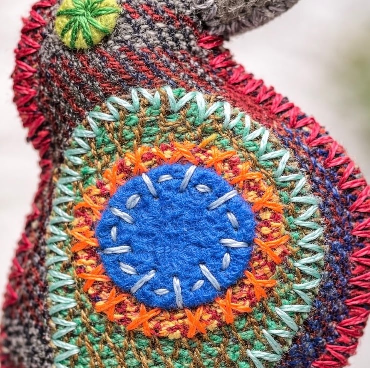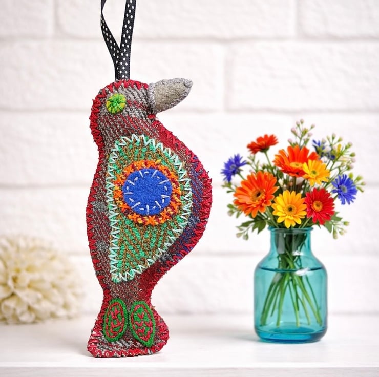 My inspiration for my Tweedie Ravens comes from my love of Folk Art textiles artefacts and the natural world around me that influence my colour choices. Using traditional methods of hand stitching and embroidery , alongside working with fabrics such as Wool Tweed and Wool Felt I aim to create a modern product reflecting traditional skills and techniques.