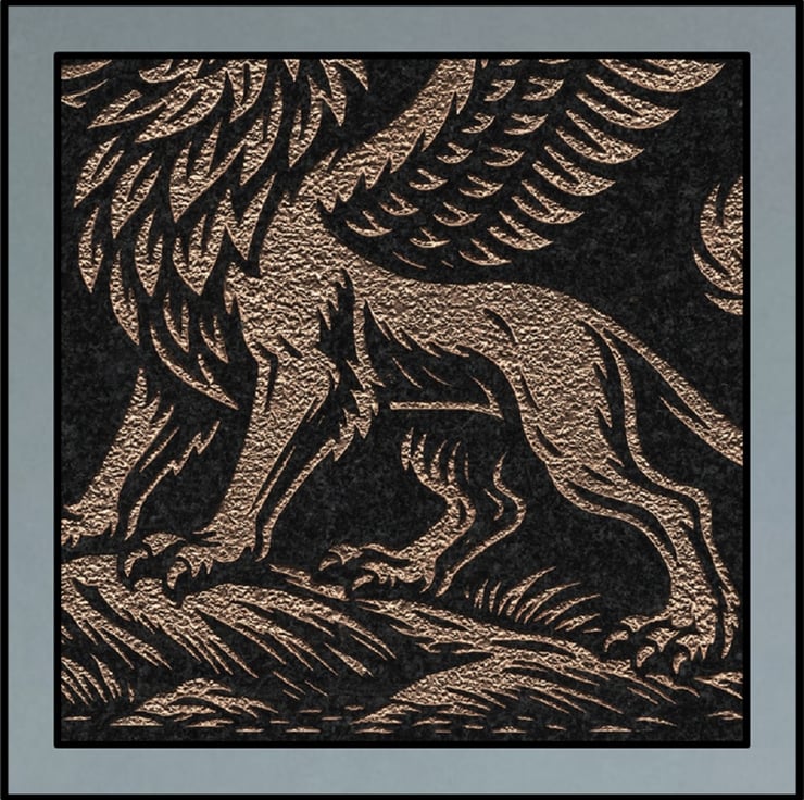A striking fusion of myth and meaning, this handcrafted plaque features a majestic griffinguardian of treasures and symbol of couragepoised in quiet strength atop a rugged stone. Rendered in a bold, metallic-like finish against a deep, shadowed backdrop, the griffin’s raised wings and curled tail speak of vigilance and grace.