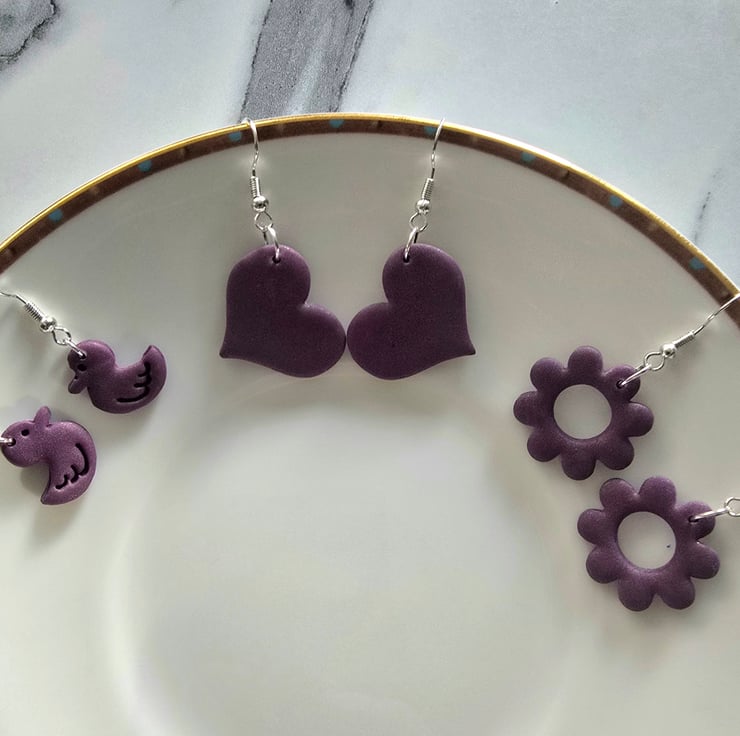 Polymer clay purple flower earrings on silver plated earhooks
