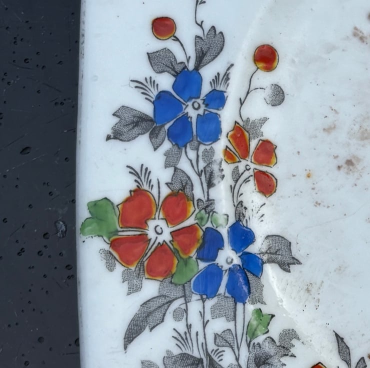 Hand crafted Jewellery and framed artworks using pre loved and discarded ceramics. Ceramic material will show signs of wear and damage. Entire process is a creative experience from discovery to final picture, nothing planned or preconceived. All materials personally collected from river banks, charity shops, roadside, woods, recycle centres, beaches, wherever dropped, dumped or donated ceramics are found, cleaned and shaped into new stories. Each titled piece comes with bio of where the ceramic came from, known history, original information and when the artwork was created. Some ceramics collected are used as found, while others are cut randomly which will shape the final picture. Every piece is individual, nothing replicated, however, due to repetitive patterns in ceramics there will be some similarity but only through the ceramic material not in the final piece.
