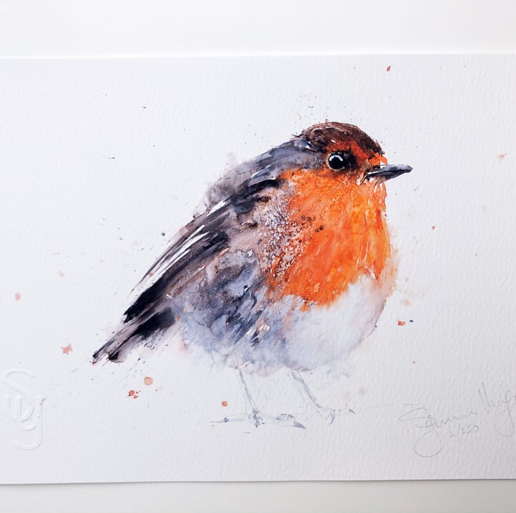 Robin Red Breast Painting - Limited Edition print on watercolour paper of my original watercolour painting of a Robin. Highly decorative and collectable this is an individually printed, signed and numbered limited edition print of my Robin painting. It has been printed on 245gm watercolour paper using museum grade inks. The texture of the paper makes this print look like an original painting.