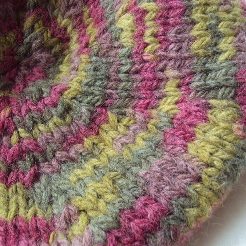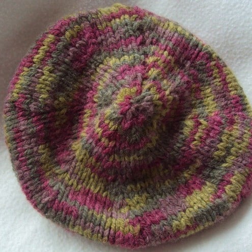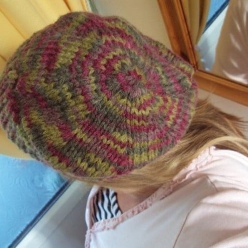 The beret is knitted up in a chunky multi -coloured yarn making it a very versatile fashion item; as well as being beautifully soft and stretchy.