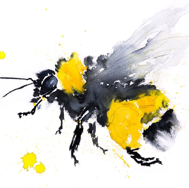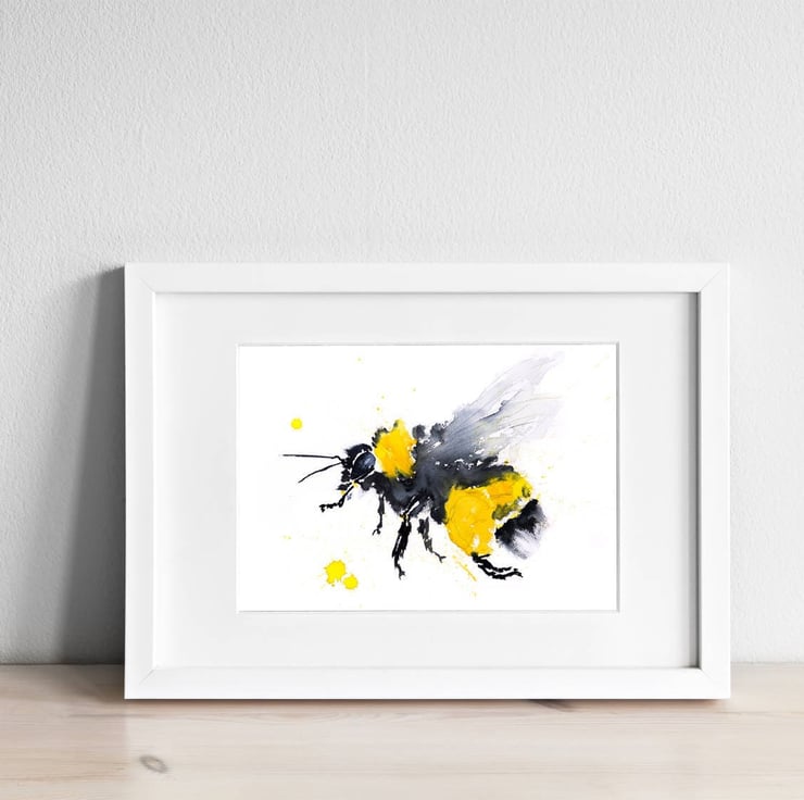 Bumble Bee Painting - Fine art quality wall art. Limited edition print on heavyweight watercolour paper. Produced from the original watercolour painting "Busy" by Syman Kaye. Highly decorative and collectable this is a hand signed, dated, numbered and embossed limited edition print of my bumble bee painting.