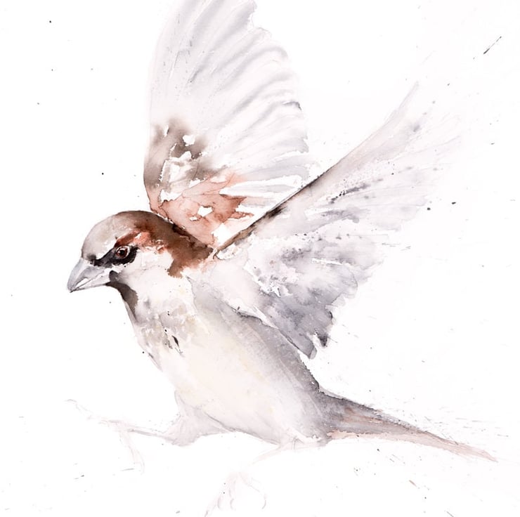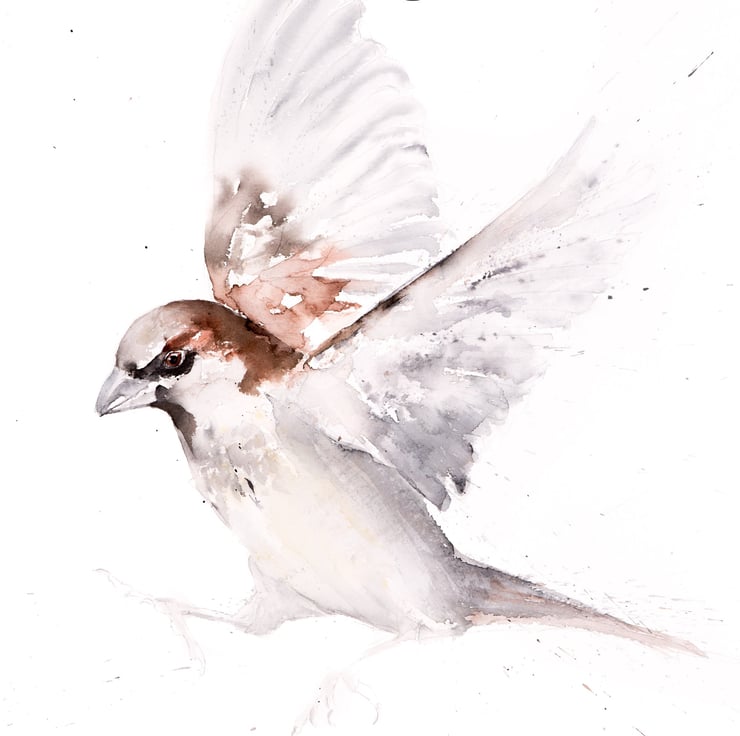 Sparrow Watercolour Painting: Hand-Signed Limited Edition Print by Syman Kaye