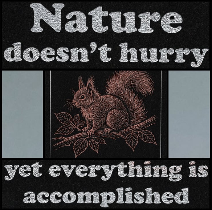 Invite calm and quiet wisdom into your home with this beautifully etched plaque featuring a serene squirrel perched on a leafy branch. Rendered in a striking silver-on-black style, the design blends intricate detail with gentle charm, perfect for nature lovers and seekers of stillness.