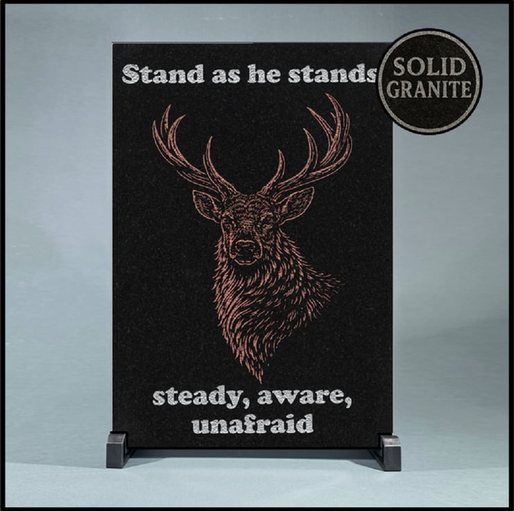This distinctive plaque is part of our Nature Wisdom Range, a collection that celebrates the quiet strength, clarity, and guidance found in the natural world. Each piece is hand-carved into solid honed granite using the traditional sand-carving method, resulting in a beautifully tactile and enduring finish. Measuring 210mm x 297mm, 10mm thick, and weighing approximately 1.5kg, it is then carefully hand-painted to highlight every sculpted detail with warmth, depth, and organic character.