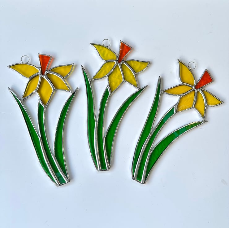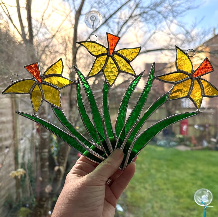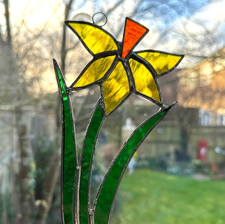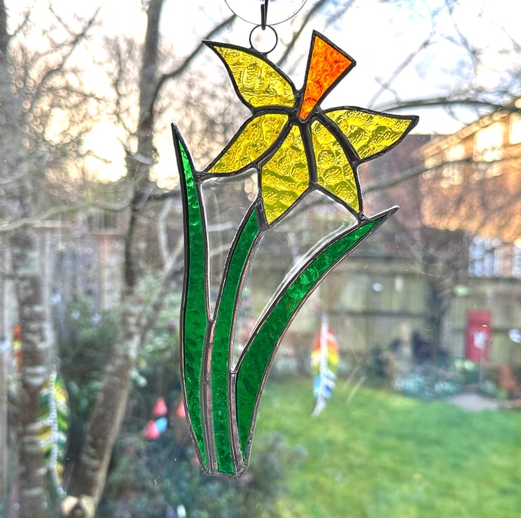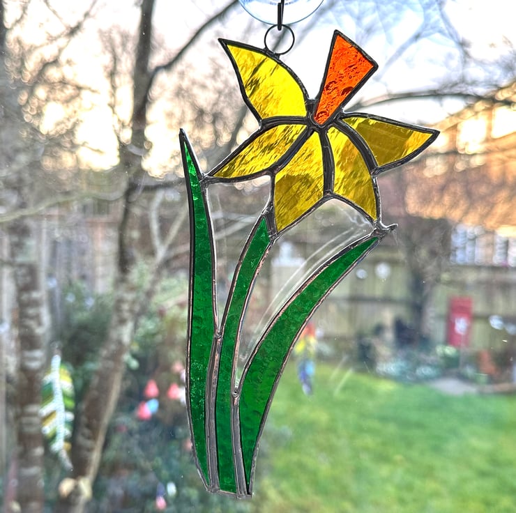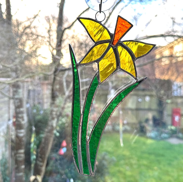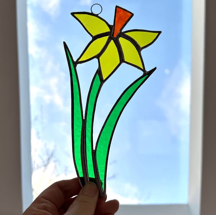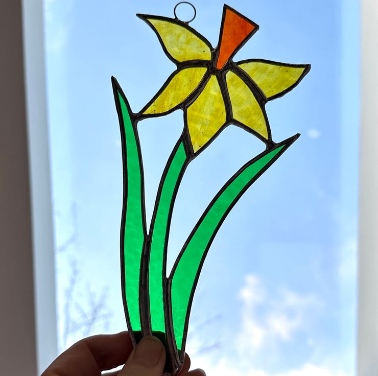Daffodil suncatcher made using beautiful stained glass by Carole's Glass.