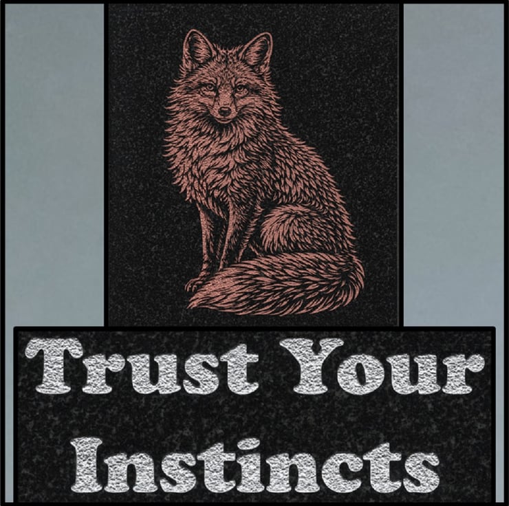 Beneath the image, the bold silver phrase ‘Trust Your Instincts’ offers a gentle nudge toward self-belief and intuitive living.
