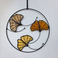 The wire ring is approx 5 inches (13cm). It is ready to hang with a 3mm black grosgrain ribbon attached. I make each hanging to order and as such it will be unique and may have subtle variations that add character and authenticity - just like the nature it is reflecting.