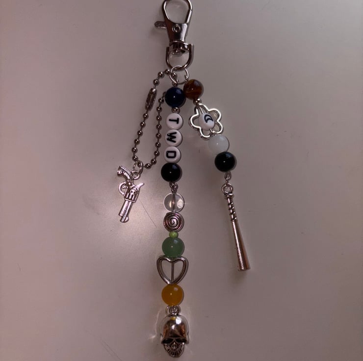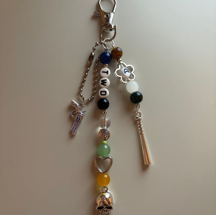 pA handmade beaded and charmed keychain inspired by The Walking Dead.