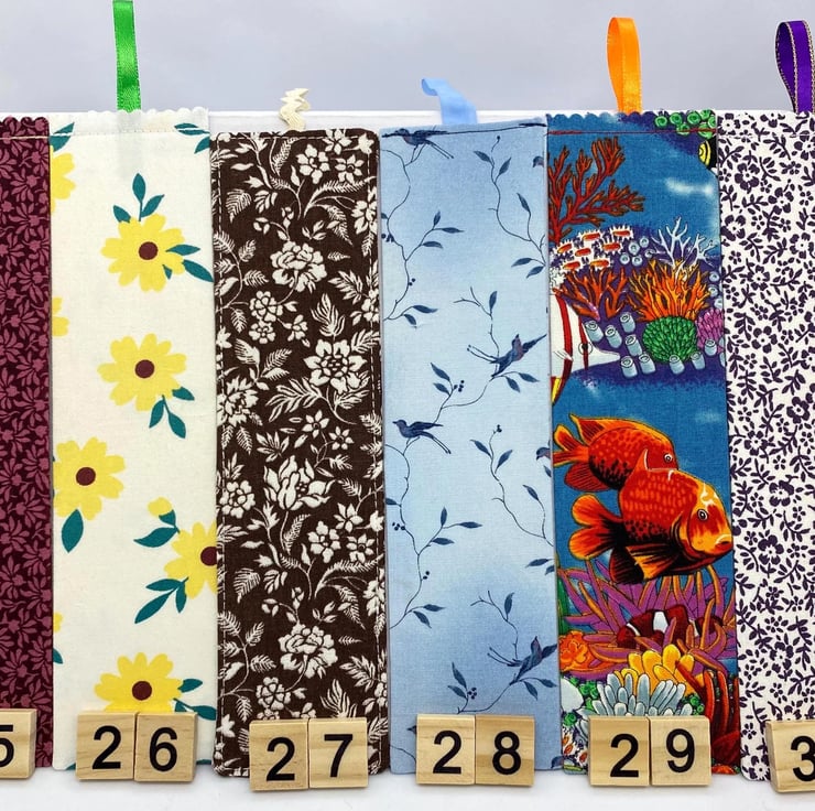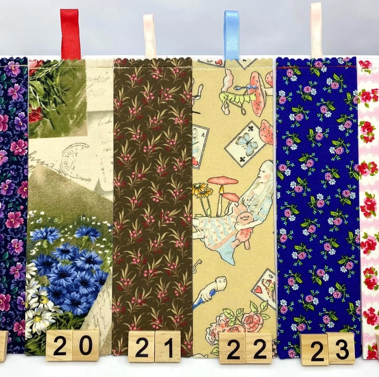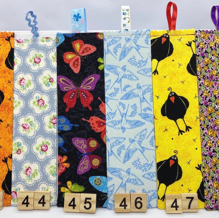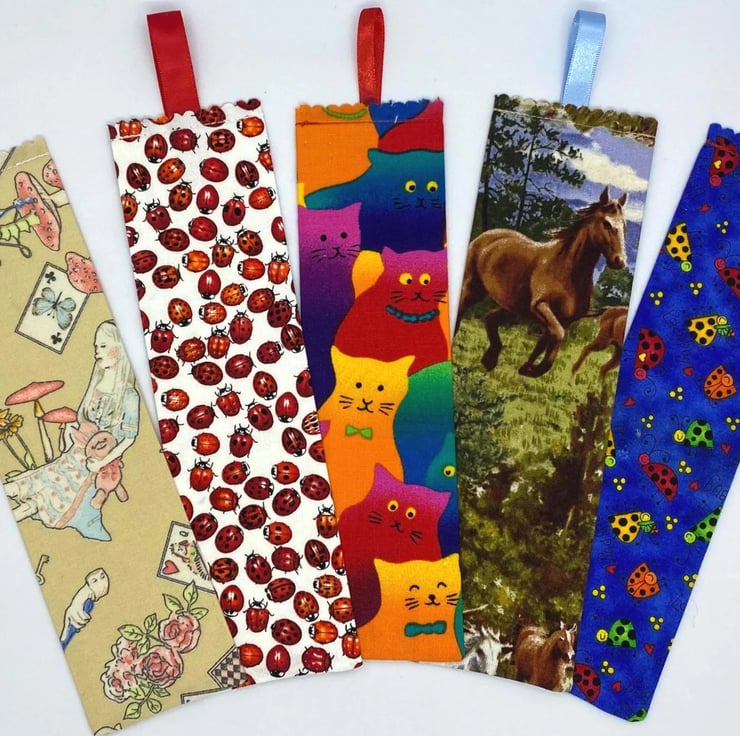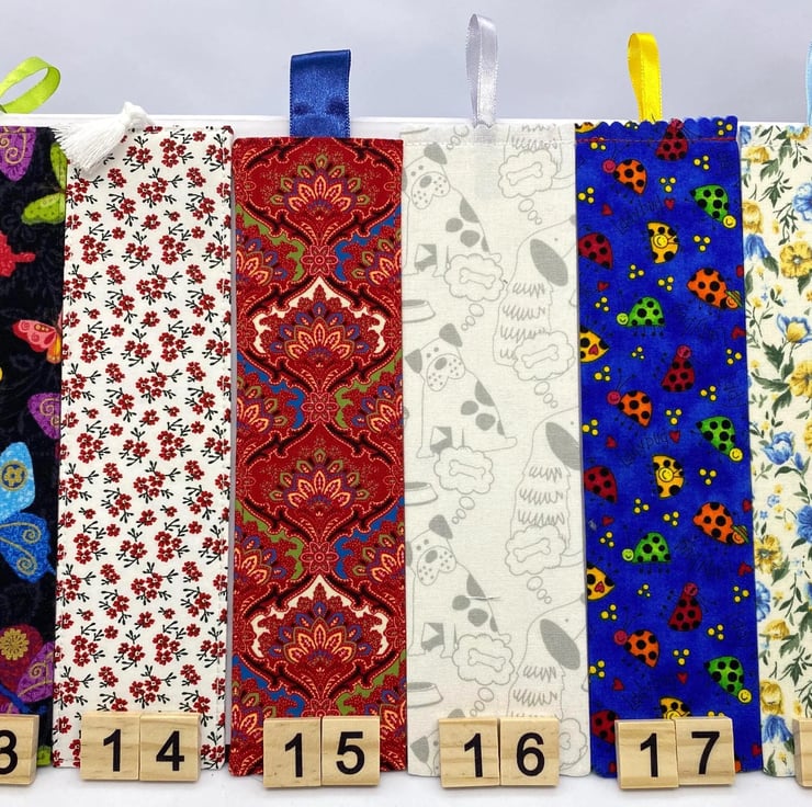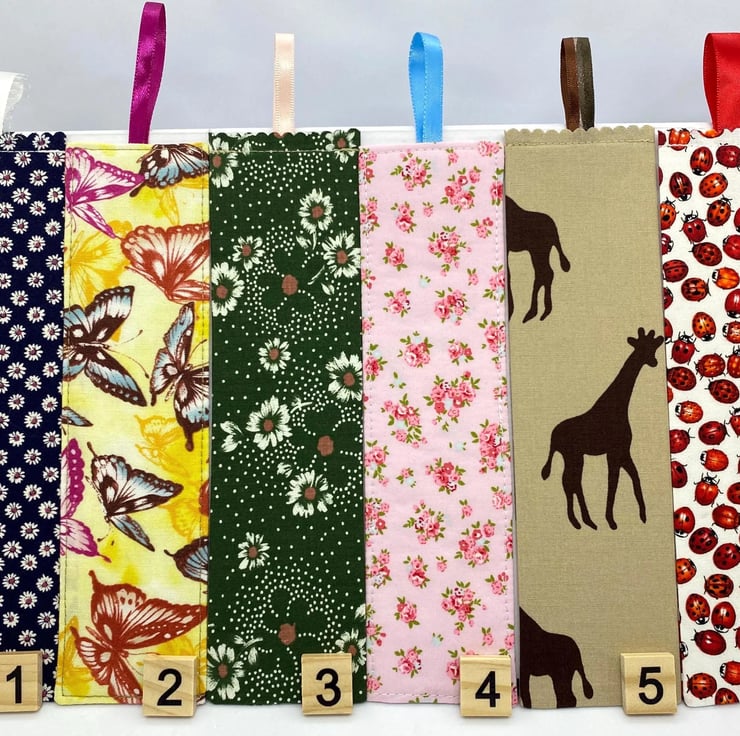 Each bookmark measures approximately 20 to 24 cm in length and is double sided, made from quality cotton and carefully handmade in the UK.