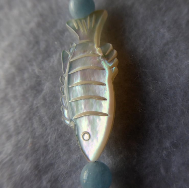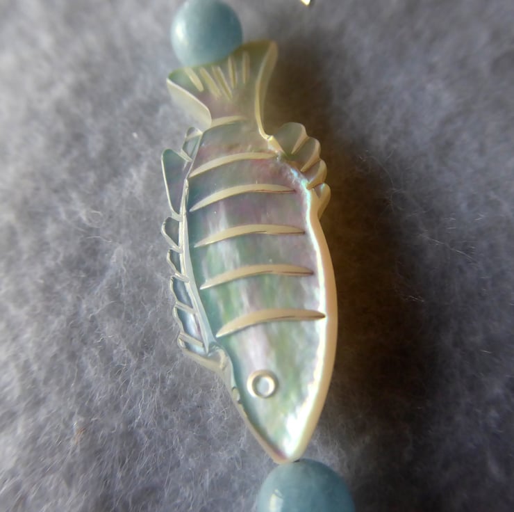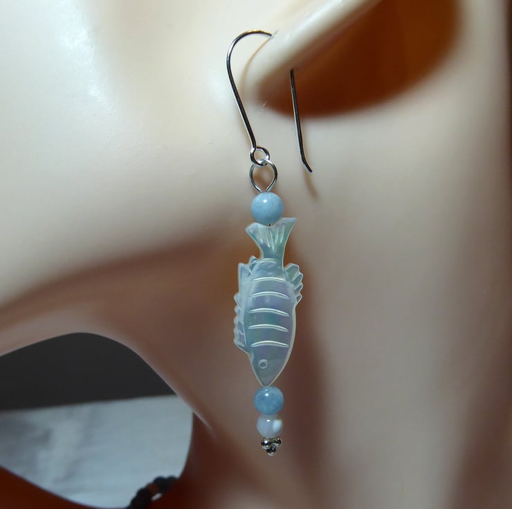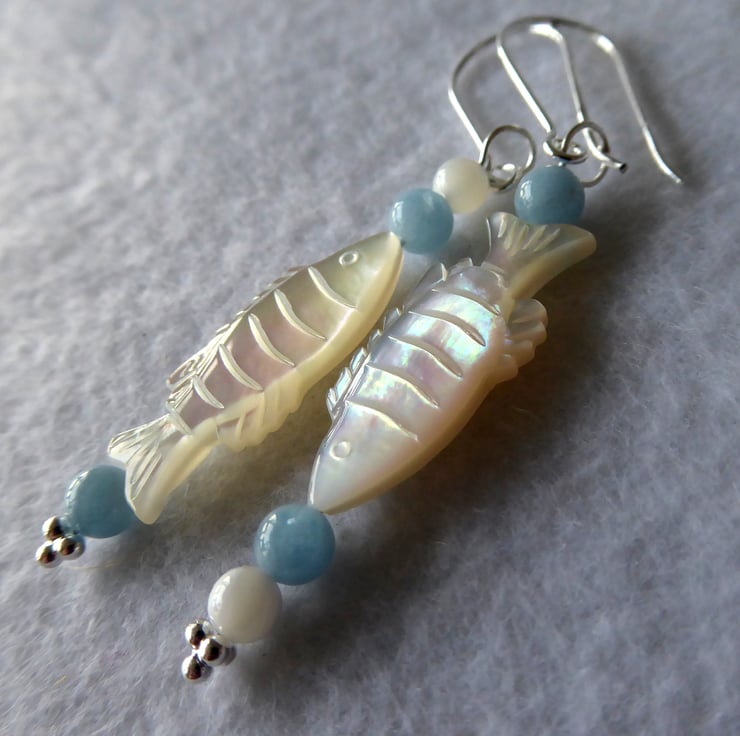Sterling Silver, Aquamarine & Mother of Pearl Pisces Earrings