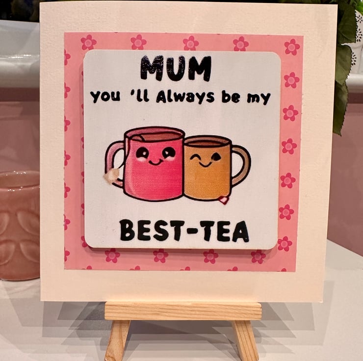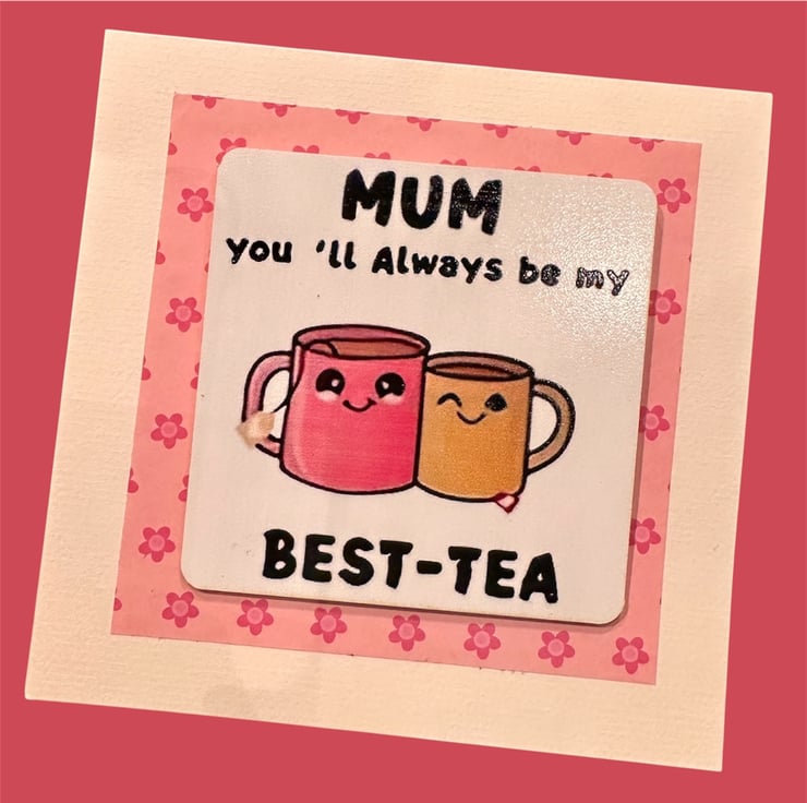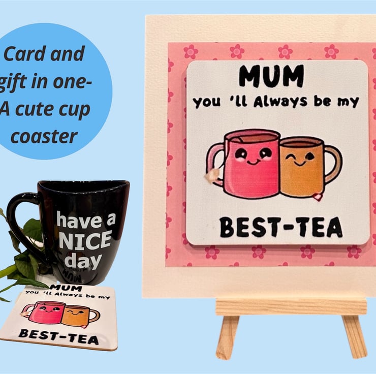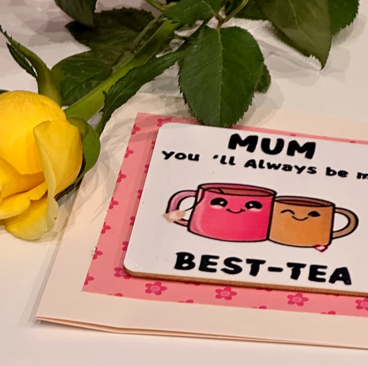 Mother’s Day card, you’re my best-tea pun, birthday mum, with drink coaster