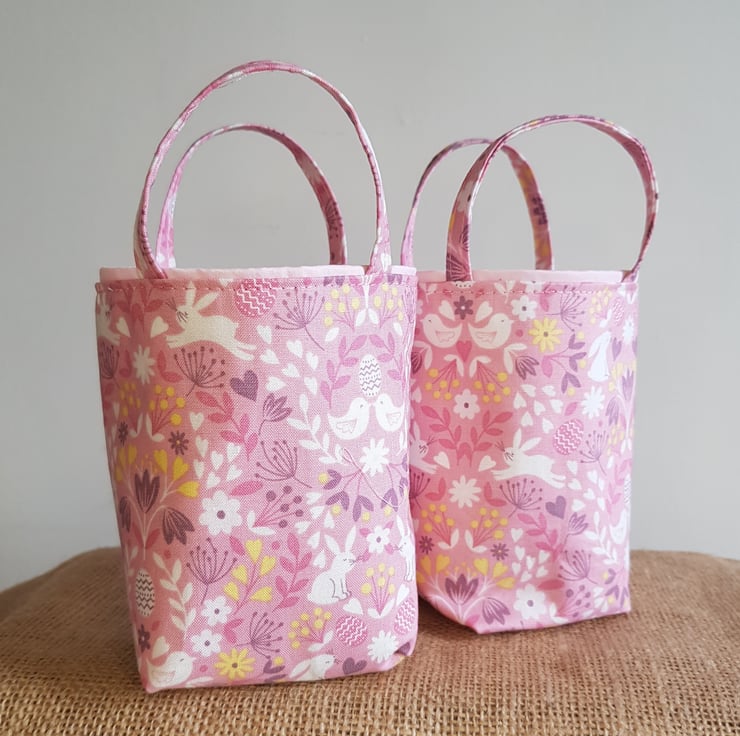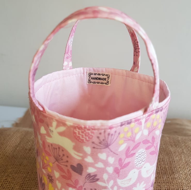 This lovely cotton fabric makes a great little gift bag. Just the right size for a pack of mini eggs. Use for an Easter egg hunt and keep for another year.