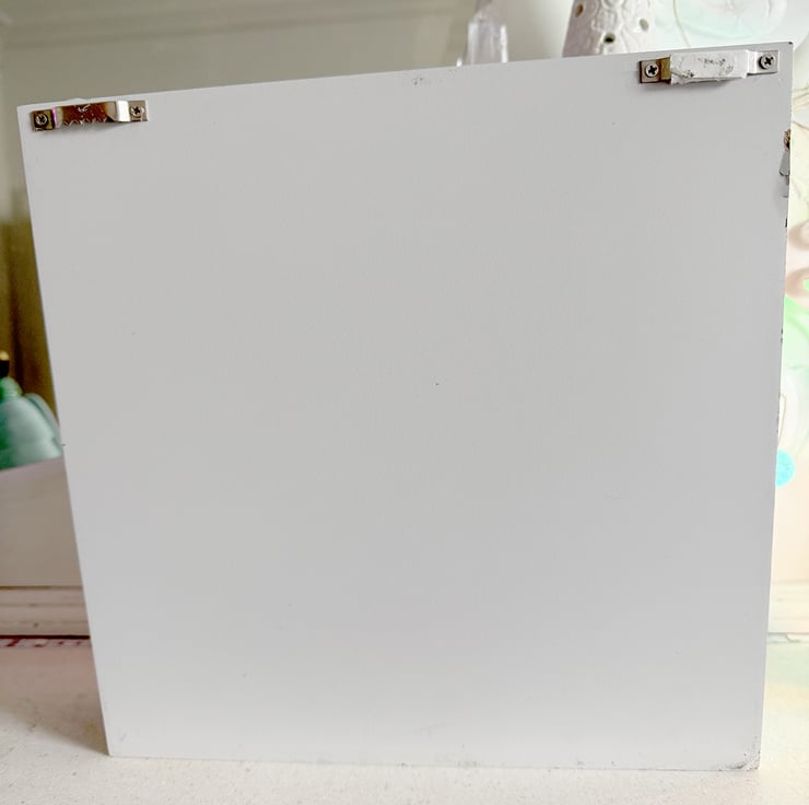 Item including frame is approx 10 inches by 10 inches. This item is quite heavy and will need screws to attach to a wall (not included).