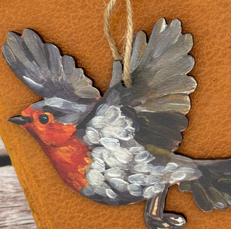 Wooden Robin Decoration - uv printed and laser cut from my original artwork