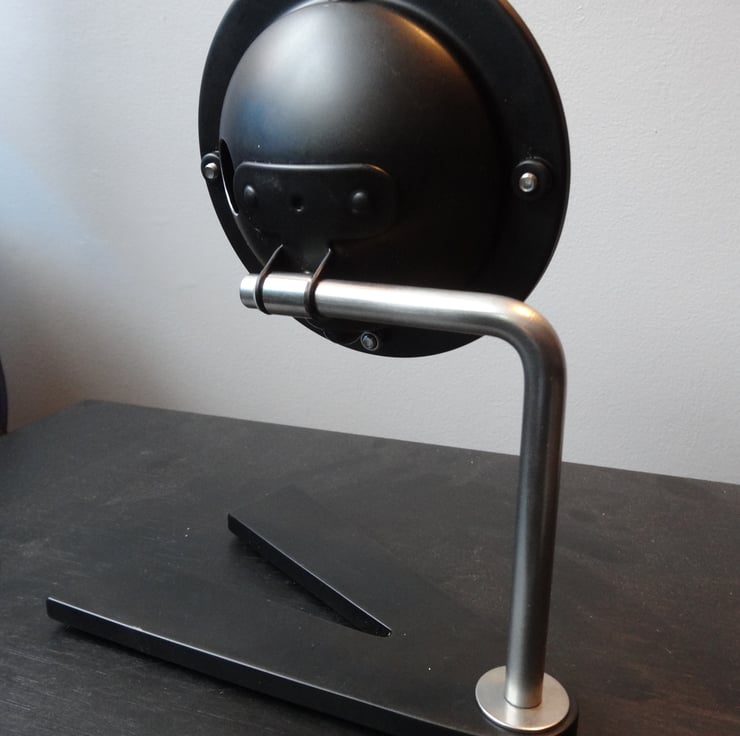 This a nice little aviation themed clock just finished. I bought the genuine new old stock aircraft gauge facia and had to create a clock around it. A classic rear car fog light gave up its back and I made a base plate out of 8mm ally. These are actually powder coated in satin black. A solid stainless steel arm was made to bring it together.