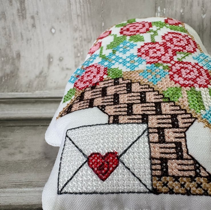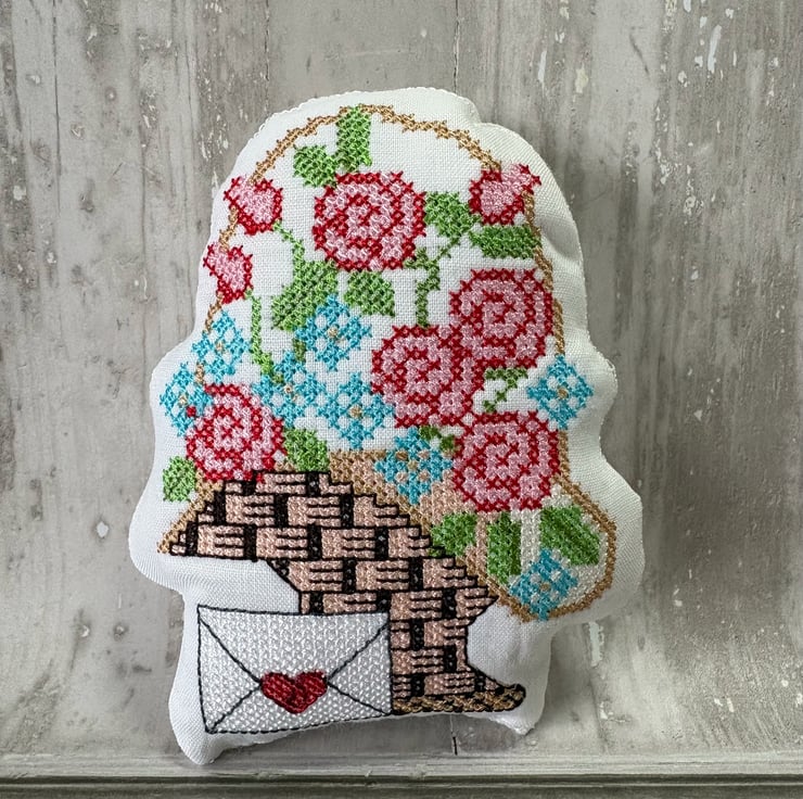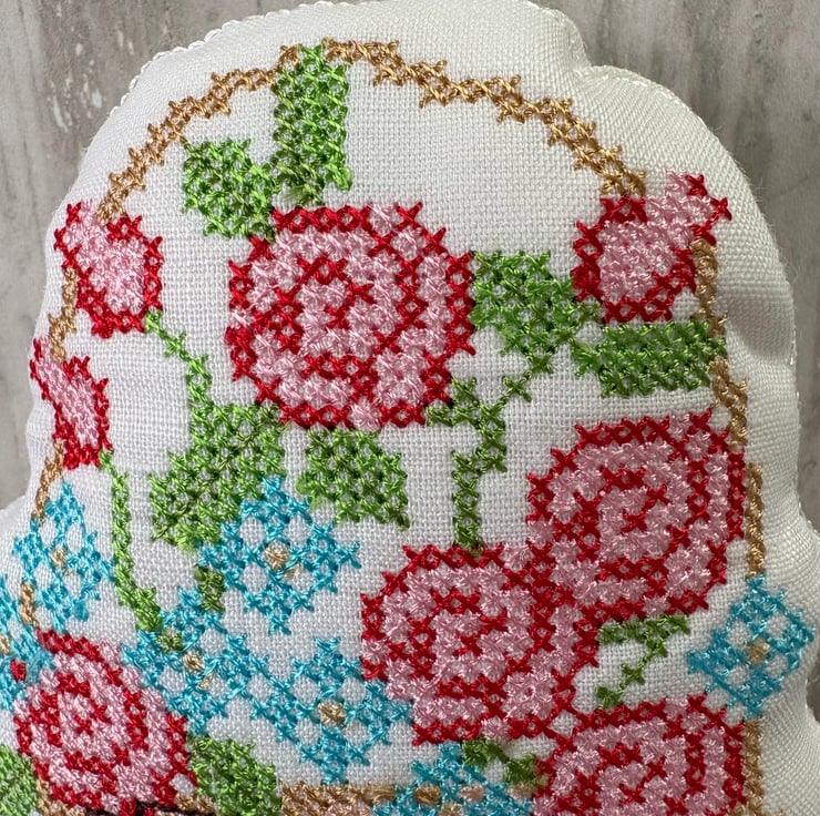 Bowl Filler machine embroidered cross stitch design. Measuring 5" x 4". White prewashed linen fabric filled with polyester fibrefill. Little pillows of fun. Select 1 or fill a bowl full of Spring colours.