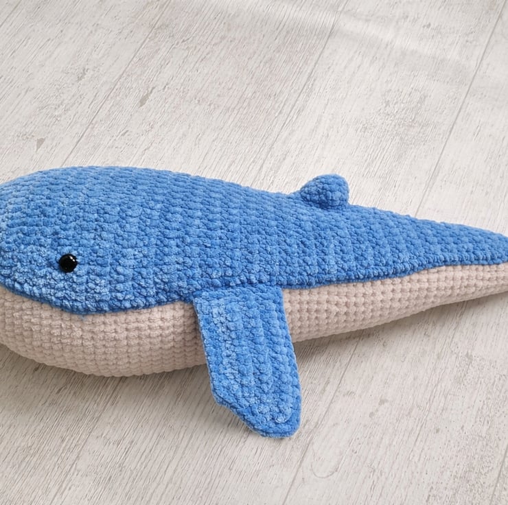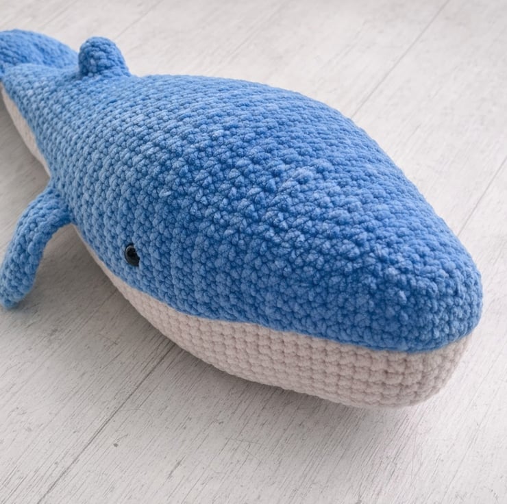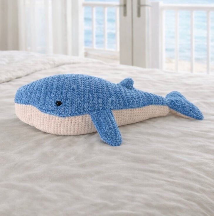 This large handmade crochet whale is carefully crafted using ultra-soft plush yarn, making it irresistibly cuddly and perfect for bedtime snuggles, nursery decor, or coastal-themed rooms.