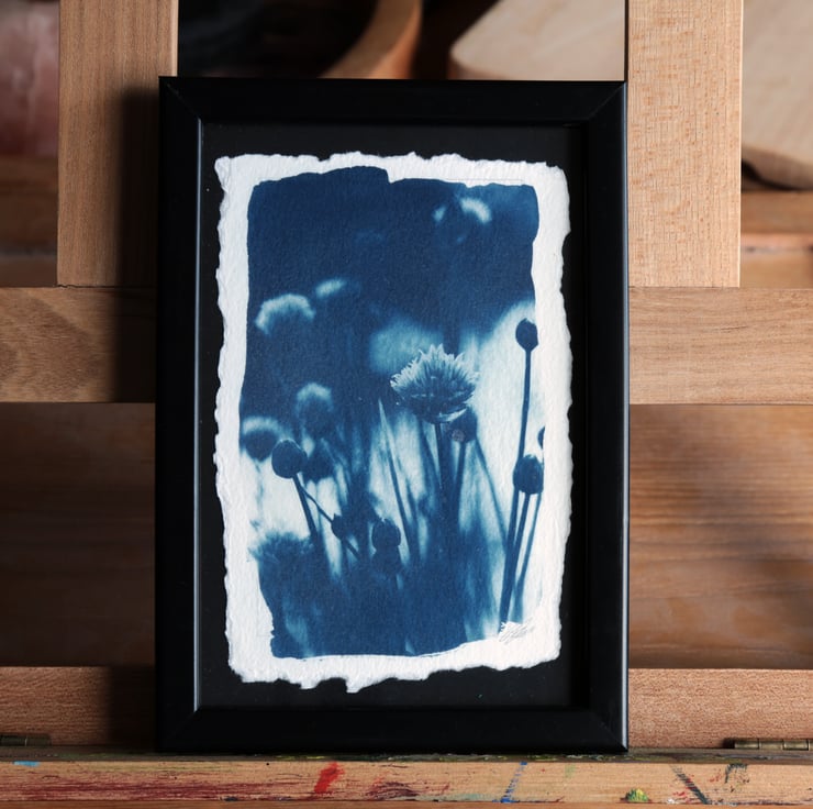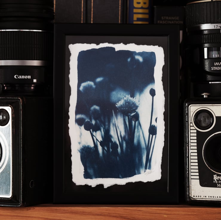 Cyanotype Photo O.O.A.K. in a 12 x 17cm black frame.
