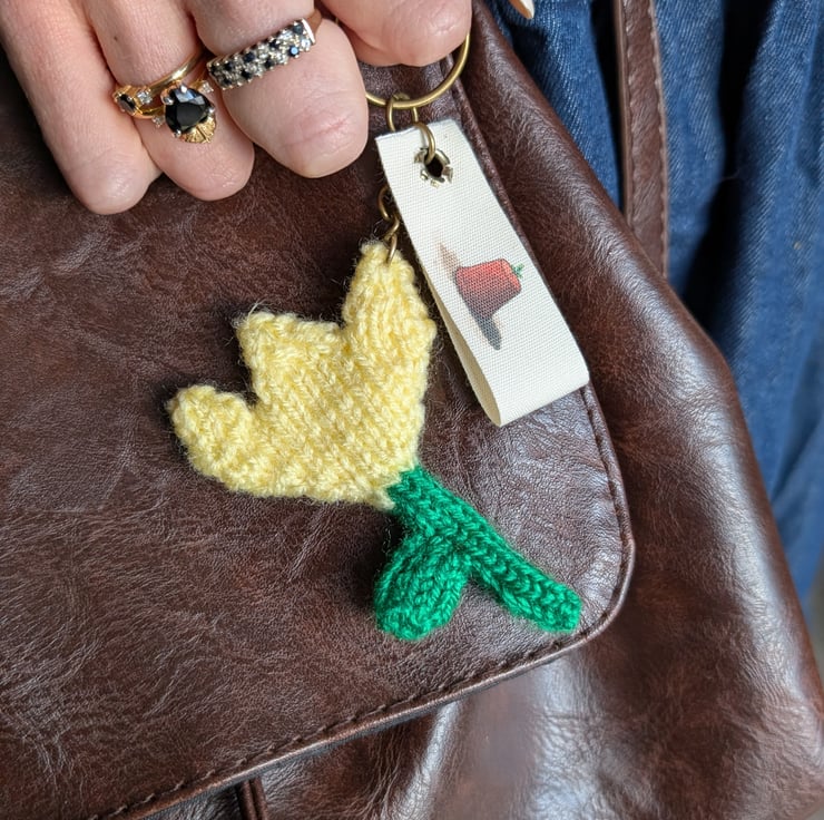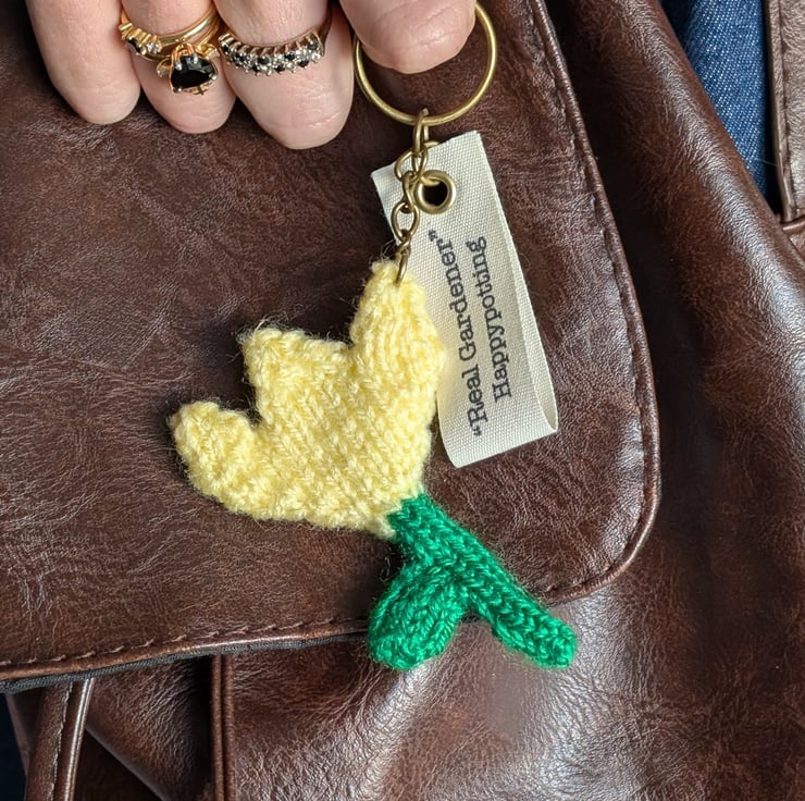- One hand-knitted (thanks to Bev! Lloyd's mum) YELLOW tulip keyring with 'Real Gardener' loop tag