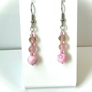 Hanging from stainless steel ear wires.